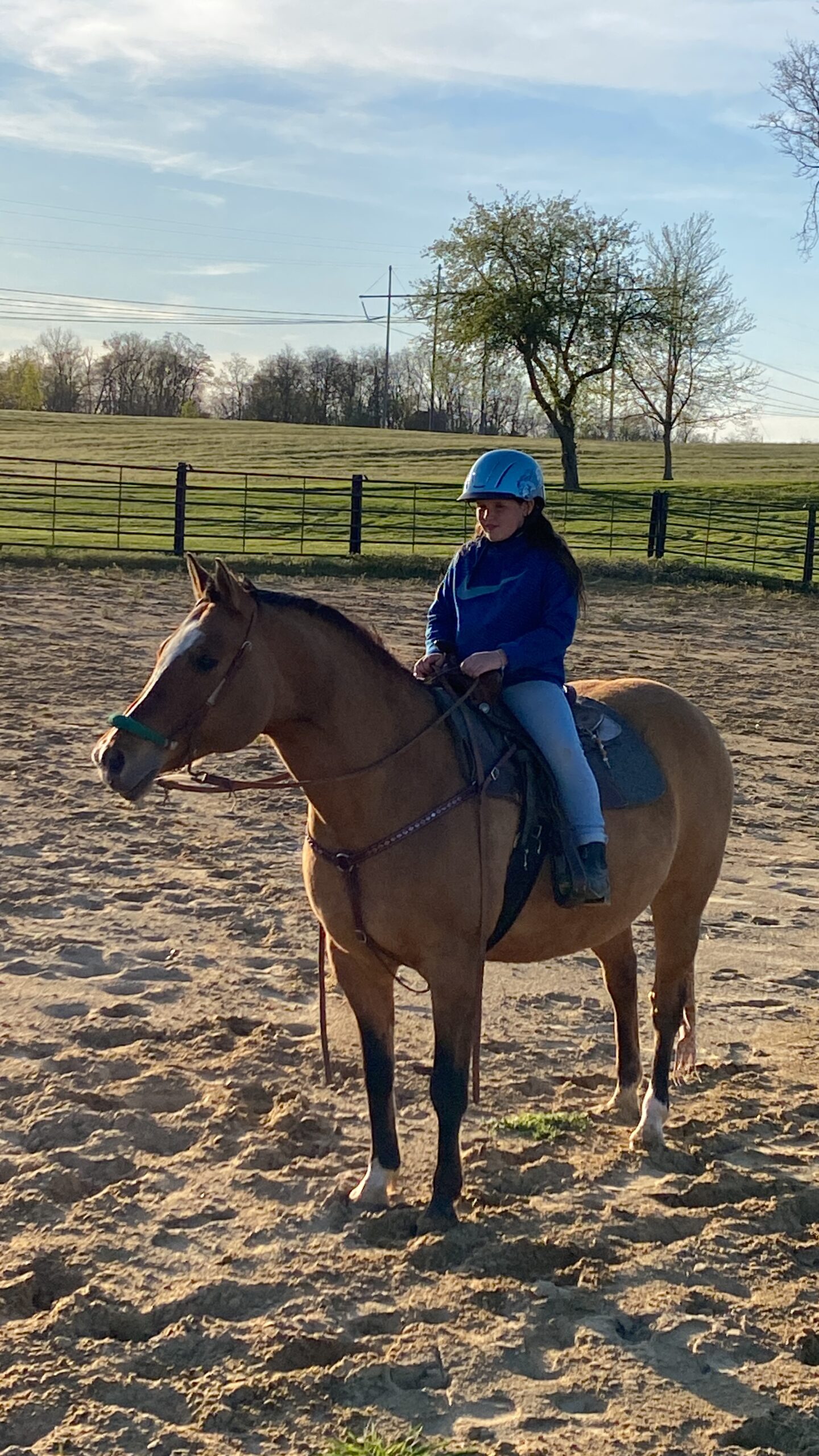 This gentle, beginner-intermediate 14.2 hand beauty has spent years shining in kids’ camps and lesson programs. Patient beyond words, she thrives with children – standing quietly for mounting, walking calmly through chaos, and giving soft, confident rides that build trust and smiles.